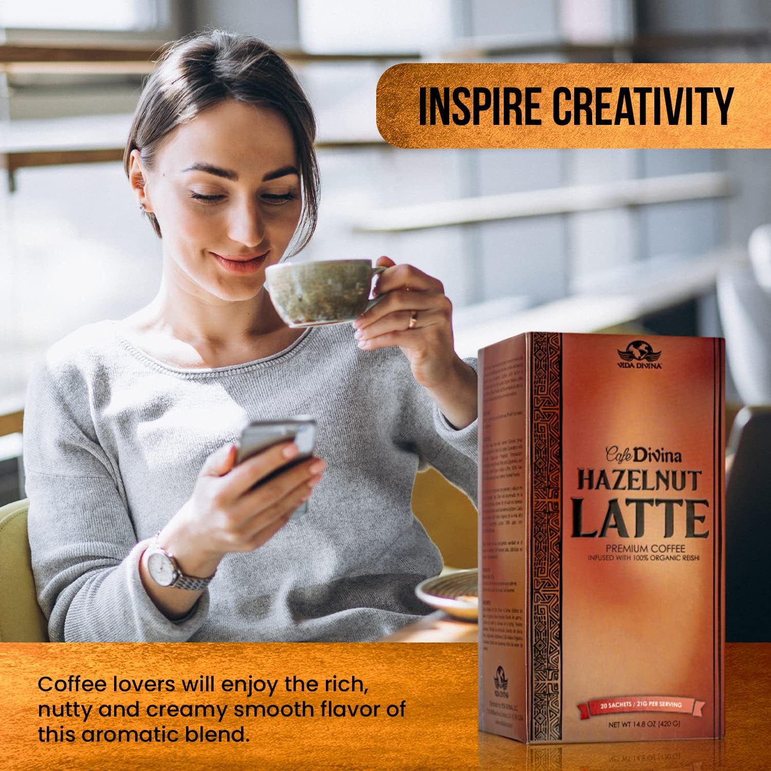 - HEALTHY & DELICIOUS: Café Divina hazelnut latte premium coffee has rich and healthy reishi extract with energetic properties.