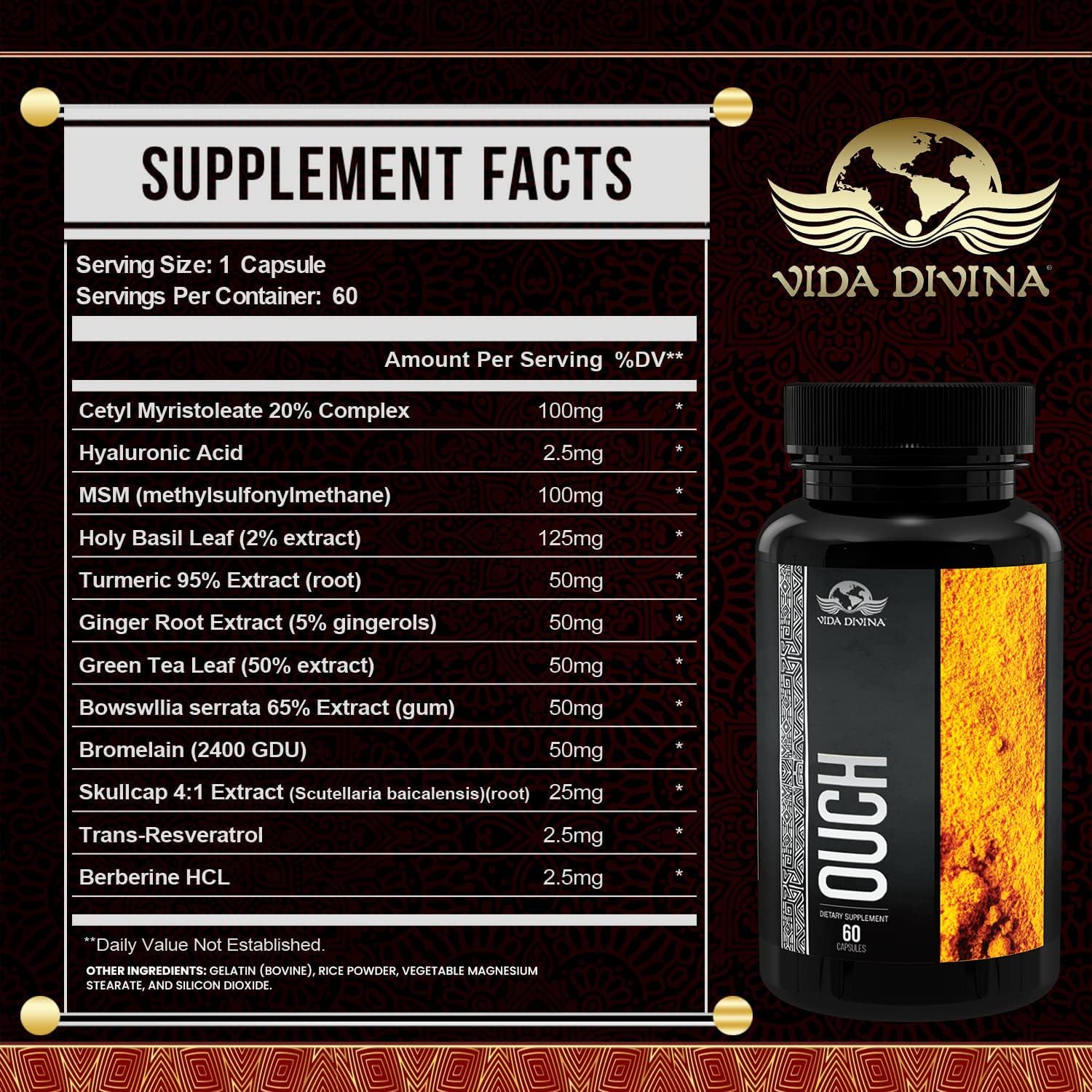 - Vida Divina Ouch Capsules help ease joint pain and support overall joint’s health, flexibility, and mobility.