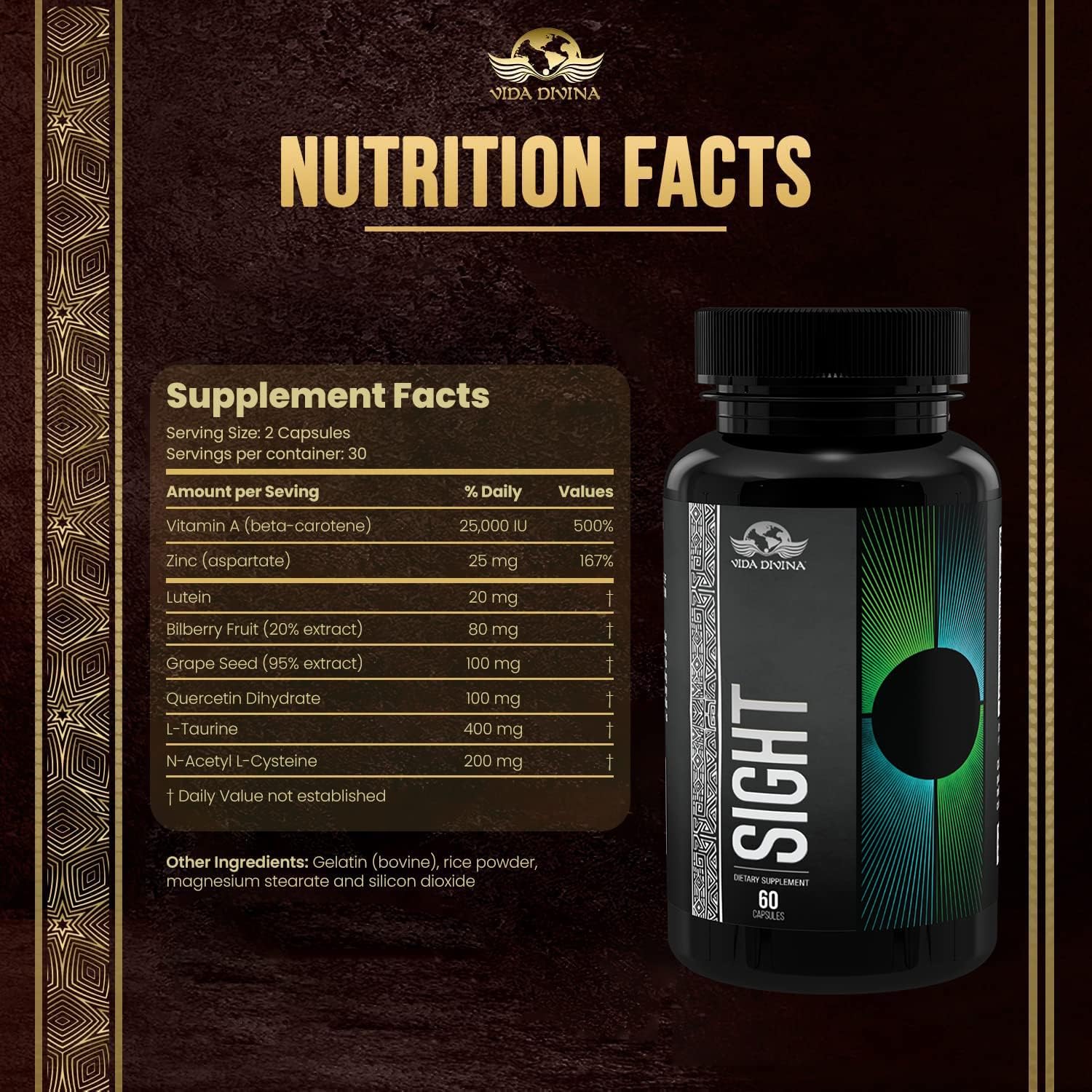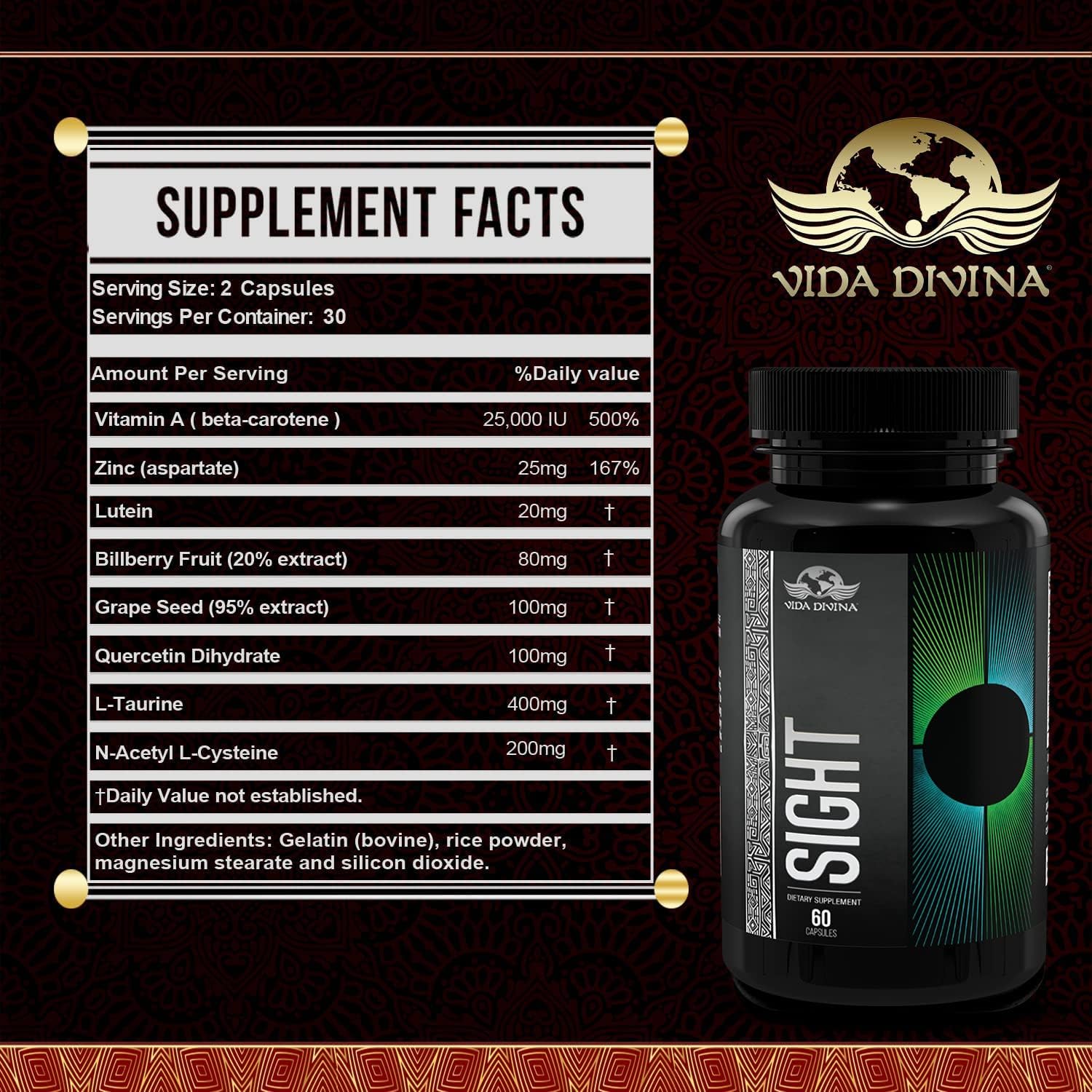 - Benefits: Vida Divina Sight Dietary Supplement helps protect your eyesight and may even improve your current vision.